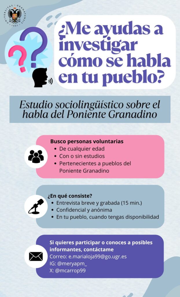 Este proyecto tiene como objetivo principal documentar y analizar la actualidad del fenómeno fonético del heheo – la aspiración o pérdida de /s/ o /θ/ en posición inicial o intervocálica – en el Poniente Granadino, un rasgo que, aunque ha recibido una escasa atención académica, parece presentarse en esta zona como un elemento identitario del habla.